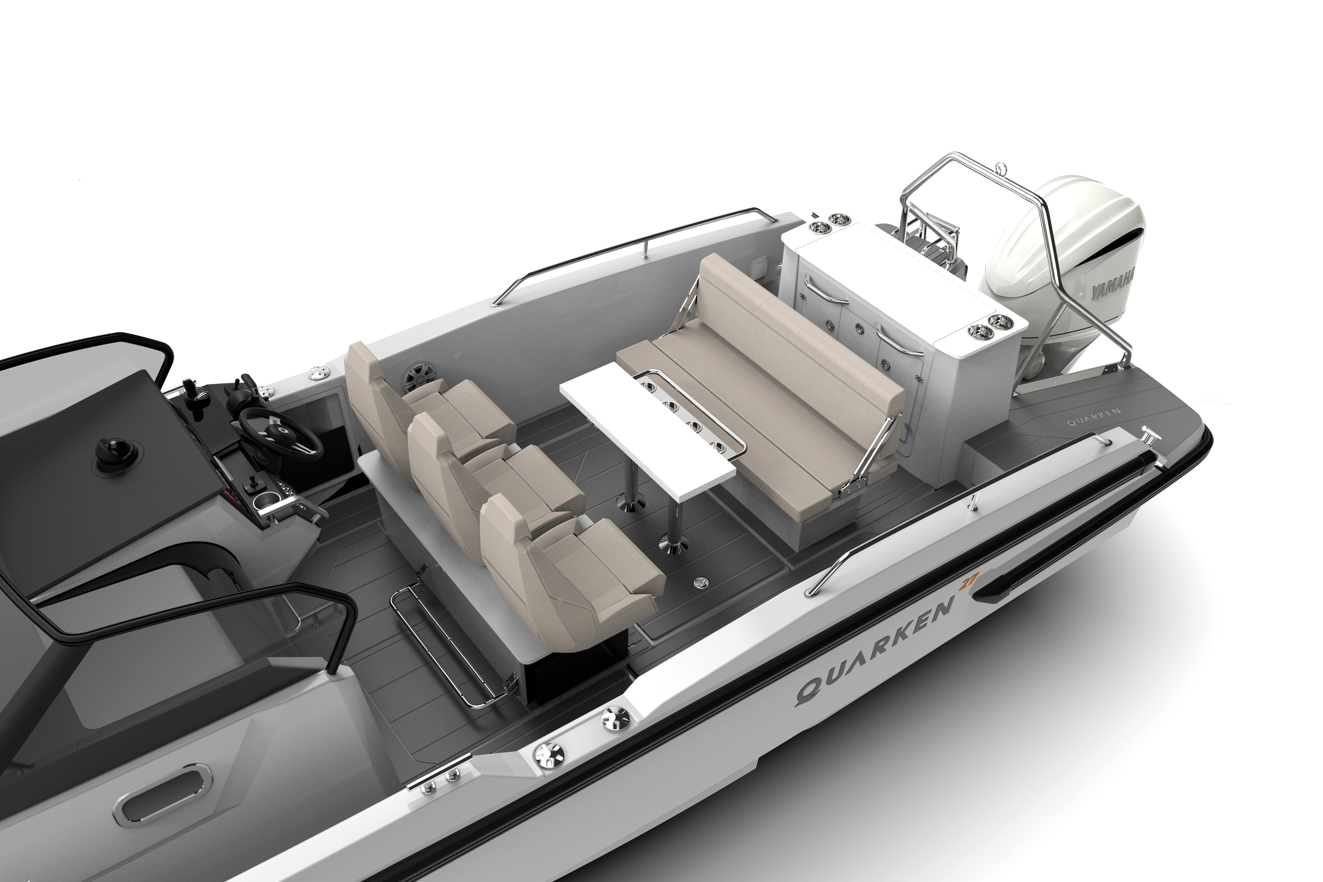 Quarken 3D logo on SB & port-side of hull